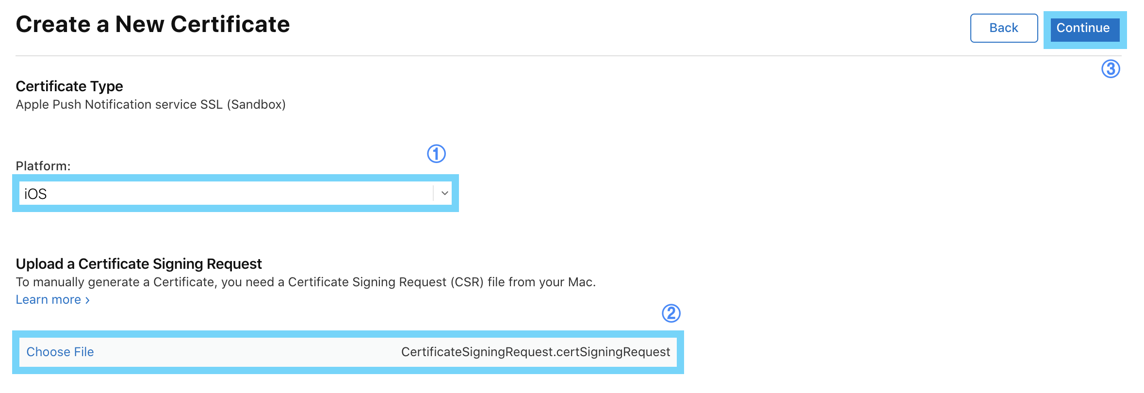 플랫폼이 iOS인거 확인해주고, Choose File 눌러서