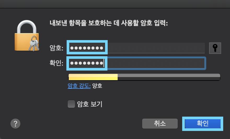 아까와 같이 비밀번호 알아서 설정해주고 확인