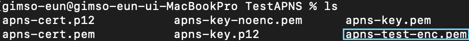 짜잔 그럼 apns-test-enc.pem 이 생기면 성공한 것임!!!!