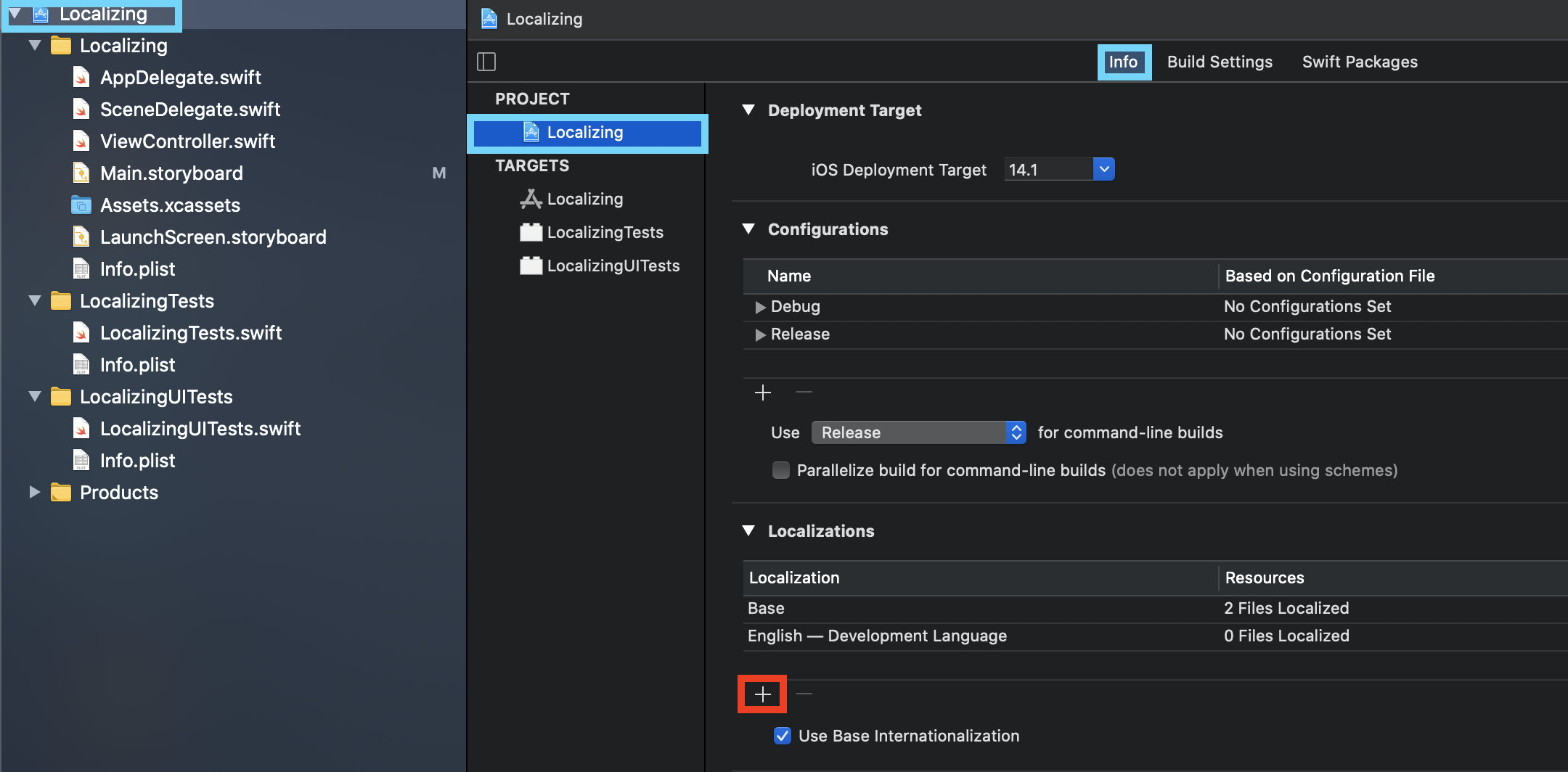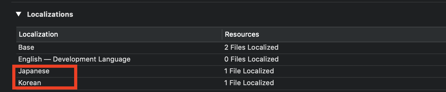 Localizations 파일은 파일을 추가하는 '순간',