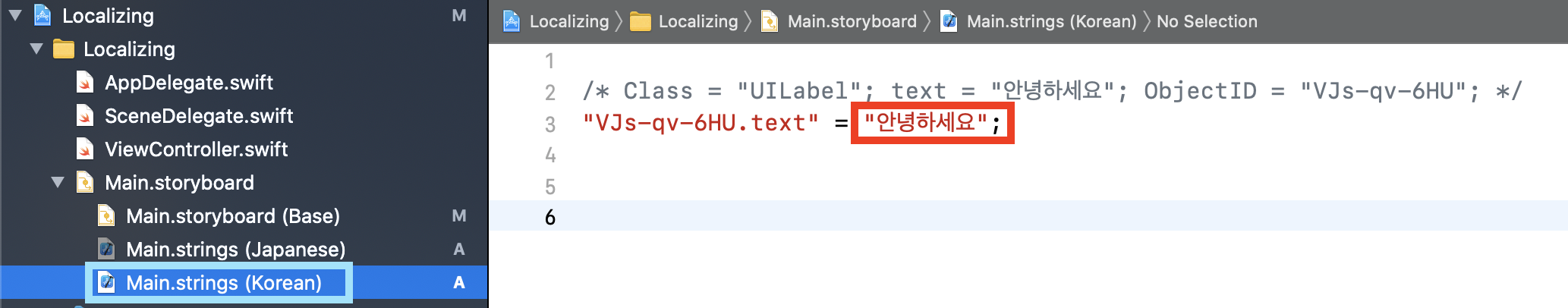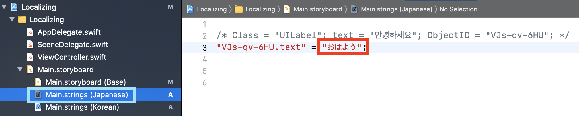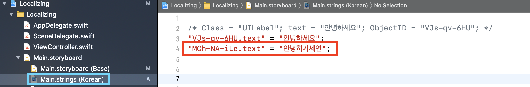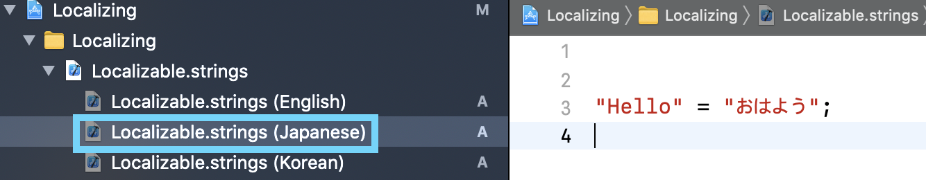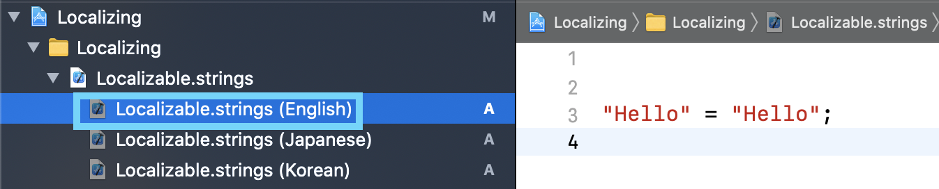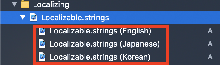 Storyboard와 마찬가지로 Localizable에서도