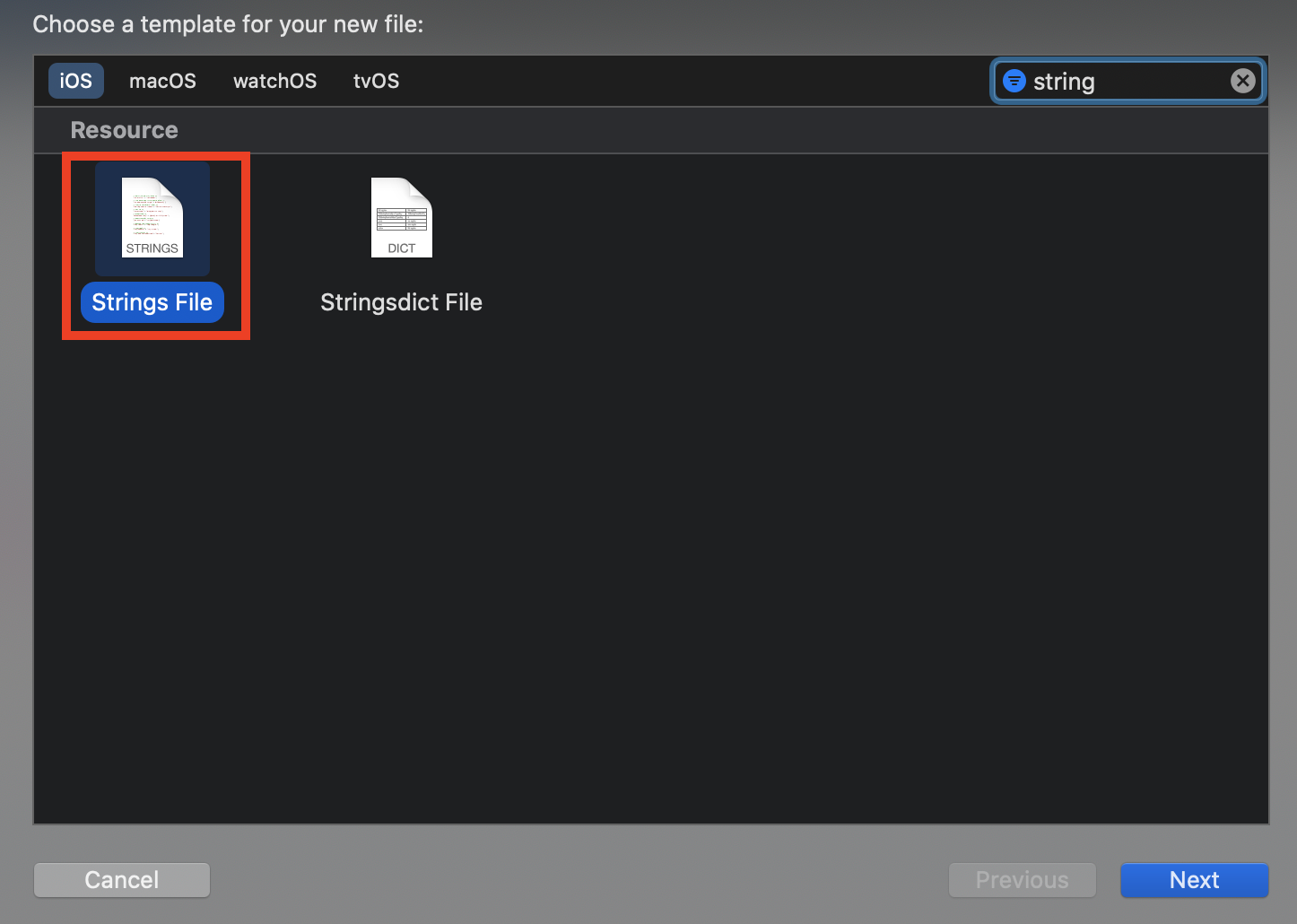 프로젝트 원하는 위치에 다음과 같은 Strings 파일을 추가해주는데..