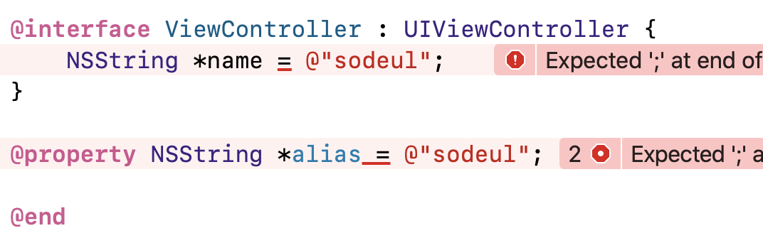 @interface로 시작된 녀석은 꼭 끝에 @end가 있어야 함