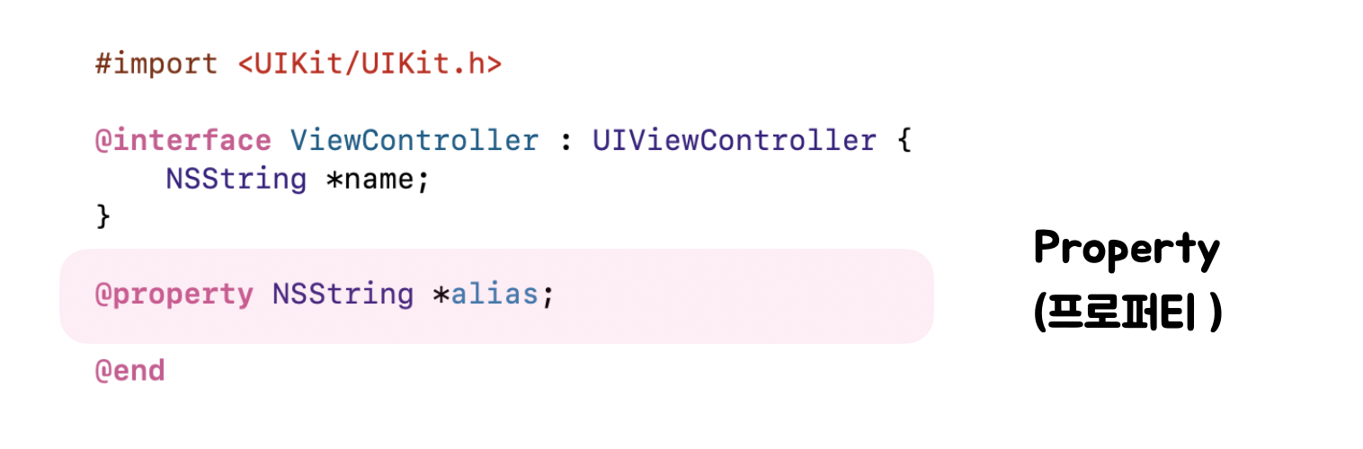 이렇게 interface field 내에 @property 라는 접근 지시자를 통해 선언되는 변수는