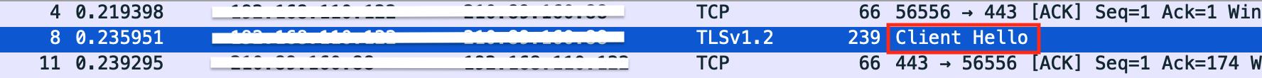 실제 Client Hello라는 패킷을 날리고 있죠?