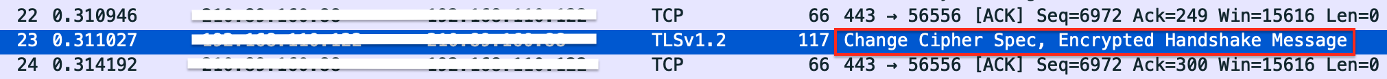 Client와 Server가 TLS Handshake를 성공적으로 마치고 종료하는 부분입니다.