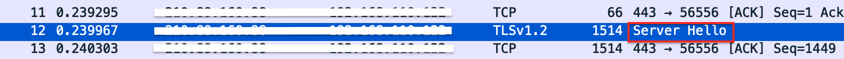 Server Hello 메세지에 해당하는 정보는 다음과 같습니다.