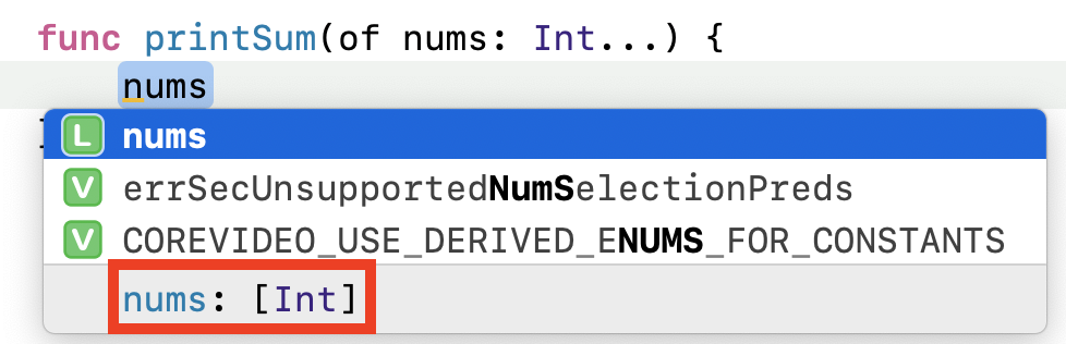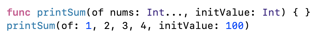 func printSum(of nums: Int...) { }