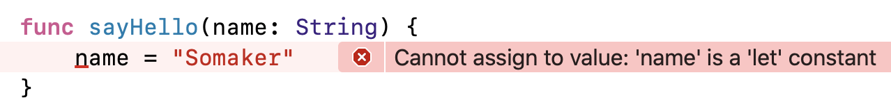 func sayHello(name: inout String) { }