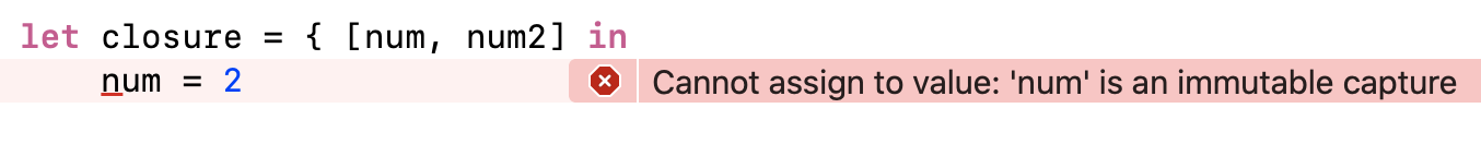 Closure를 선언할 당시의 num의 값을 Const Value Type으로 캡쳐함