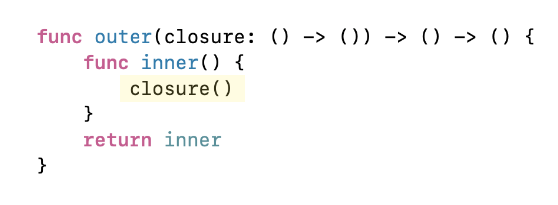 중첩 함수 내부에서 클로저를 사용한 경우, 중첩 함수가 클로저를 캡쳐하기 때문에