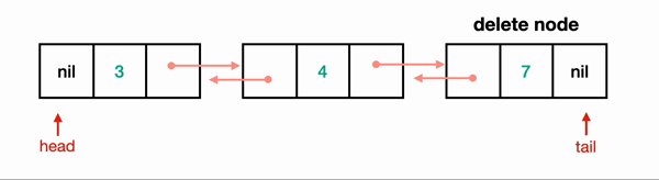 그림으로 보면 delete할 노드의 바로 이전 노드의 next를 nil로 바꿔주면서,