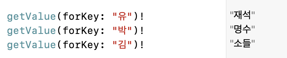 마찬가지로 "박"이라는 Key로 0번 index에 있는 "명수" 값을 얻어옴