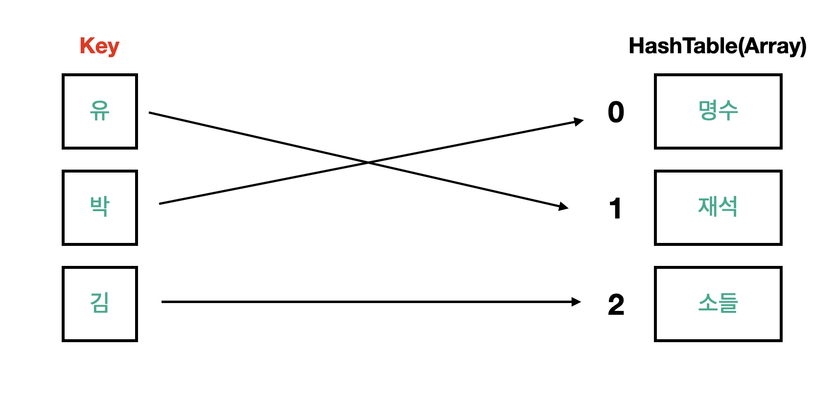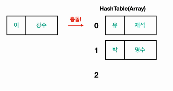 우리가 위에서 "유", "박", "김"이라는 Key를 해시할 땐 아무 문제가 없었으나
